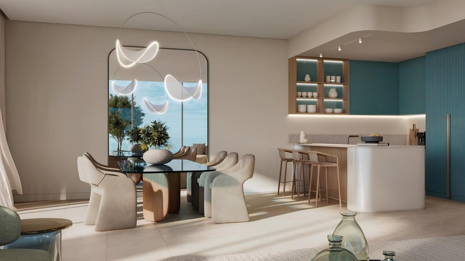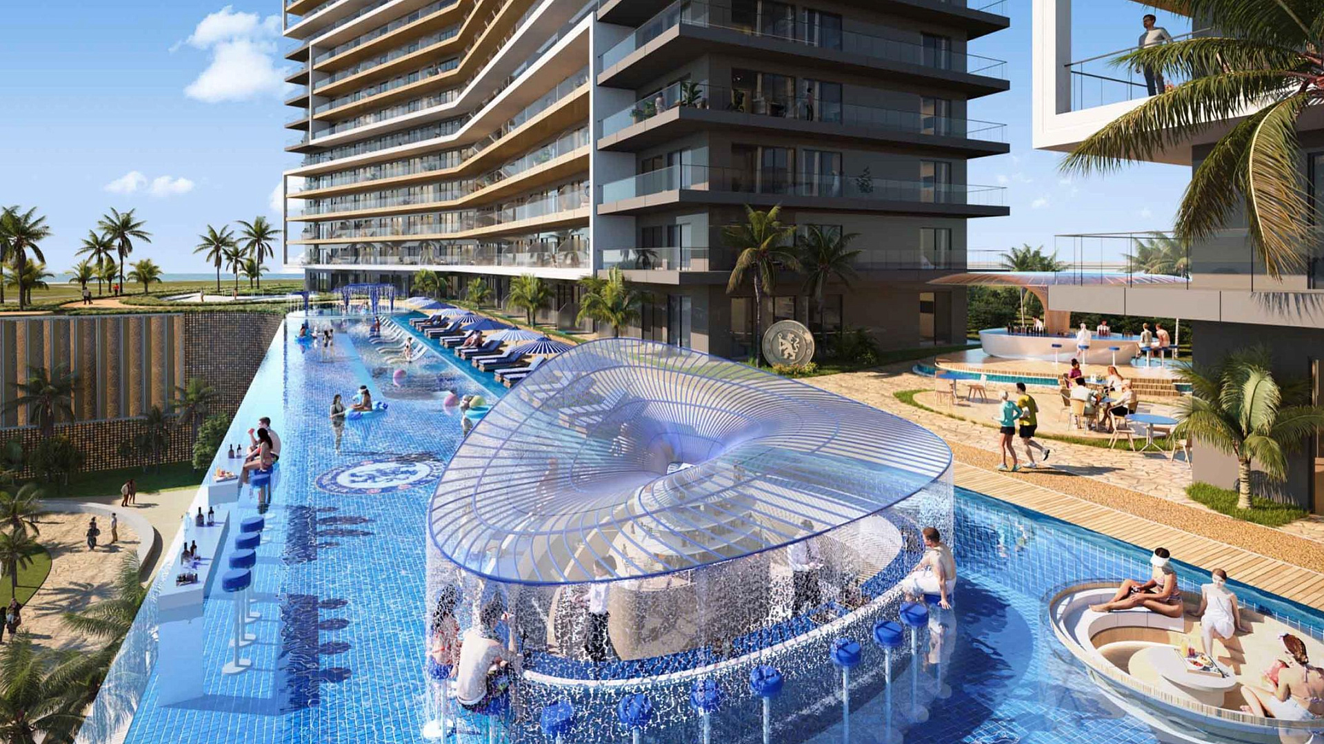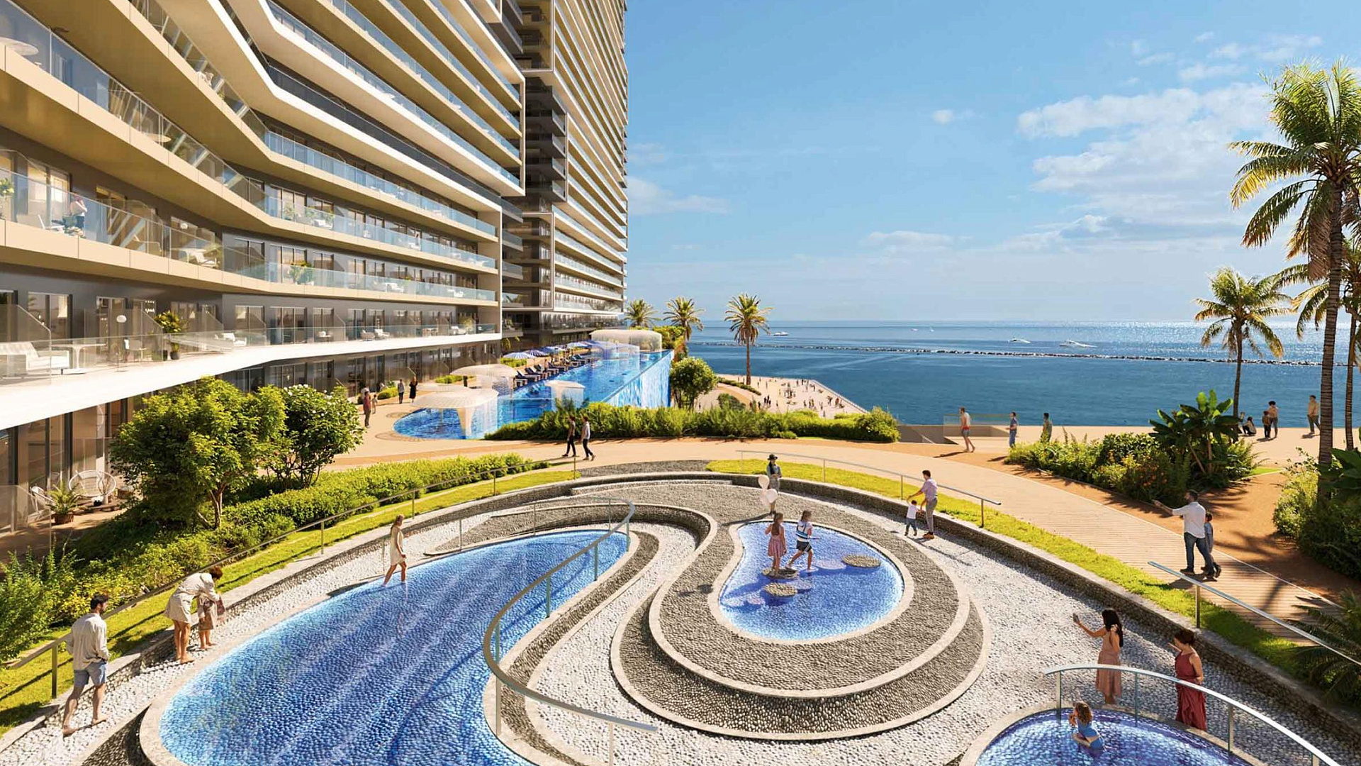 Интерьеры оформлены в биофильной концепции, где используются светлые природные тона, мягкие текстуры и обилие зелени. Панорамные окна с обзором до 270° открывают впечатляющие виды на море, гавань и городской горизонт. Пространства наполнены светом и создают атмосферу спокойствия и уюта. Инфинити-бассейн с панорамным видом, современные тренажёрные залы и фитнес-зоны, спа-центр, залы медитации и зоны отдыха на подиуме, кинотеатр и футбольный симулятор, бассейны для взрослых и детей, рестораны и кафе с диетическим и wellness-меню, приватный пляж с коралловым рифом. Такая инфраструктура создаёт сбалансированную среду для активной, здоровой и комфортной жизни у моря.Комплекс расположен в сердце Dubai Maritime City — одного из самых престижных и быстроразвивающихся районов Дубая. Благодаря удачному расположению, жители получают быстрый доступ ко всем ключевым точкам города.
