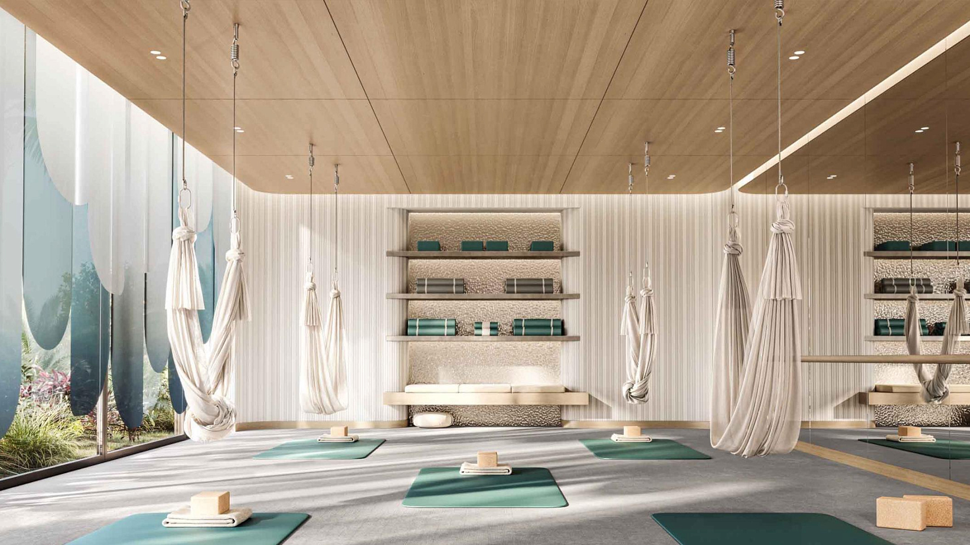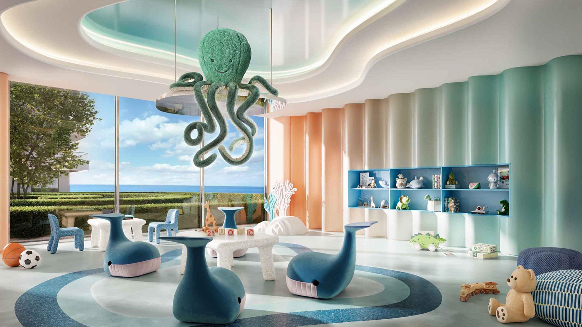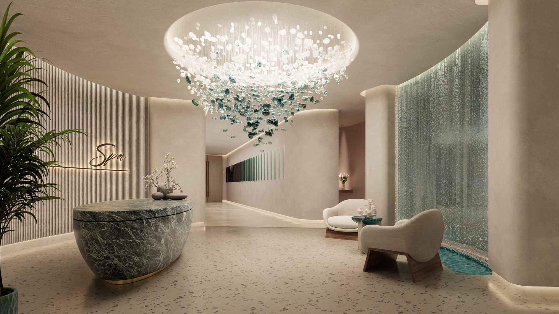 Интерьеры оформлены в биофильной концепции, где используются светлые природные тона, мягкие текстуры и обилие зелени. Панорамные окна с обзором до 270° открывают впечатляющие виды на море, гавань и городской горизонт. Пространства наполнены светом и создают атмосферу спокойствия и уюта. Инфинити-бассейн с панорамным видом, современные тренажёрные залы и фитнес-зоны, спа-центр, залы медитации и зоны отдыха на подиуме, кинотеатр и футбольный симулятор, бассейны для взрослых и детей, рестораны и кафе с диетическим и wellness-меню, приватный пляж с коралловым рифом. Такая инфраструктура создаёт сбалансированную среду для активной, здоровой и комфортной жизни у моря.Комплекс расположен в сердце Dubai Maritime City — одного из самых престижных и быстроразвивающихся районов Дубая. Благодаря удачному расположению, жители получают быстрый доступ ко всем ключевым точкам города.