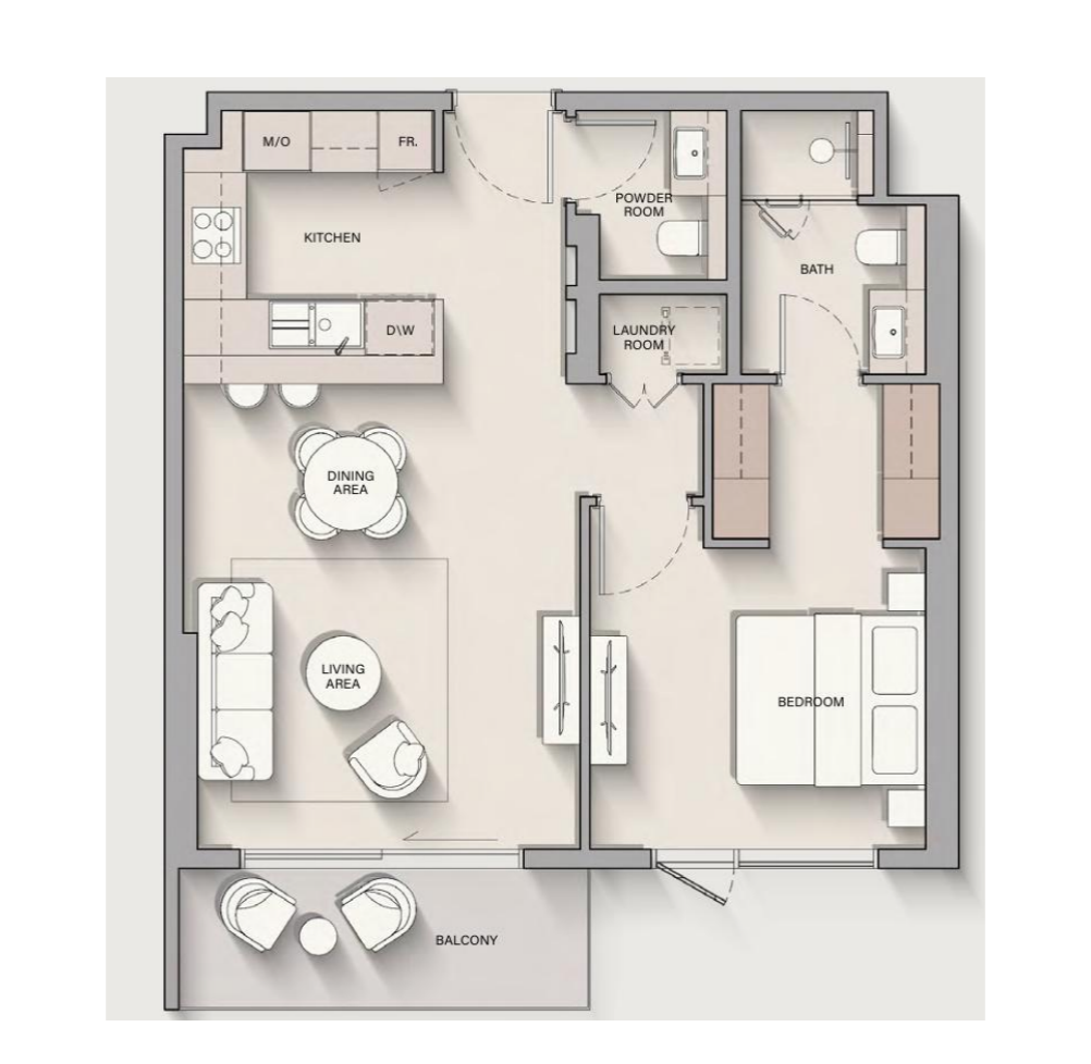 1 bedroom apartment for sale an elite complex where thoughtful design is combined with unsurpassed comfort. The layouts include laundry rooms, powder rooms and balconies. will have a variety of entertainment, wellness and recreational locations. Among them are swimming pools, an area with sun loungers, a garden, a clubhouse with a terrace and lounge, a library, a coworking space, a room with slot machines, a yoga studio, a music room and a fitness studio.