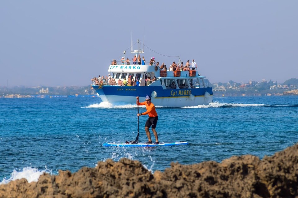 In many resorts in Cyprus, you can rent kayaks and make an unforgettable trip along the coast. Particularly attractive are the areas of Ayia Napa and Paphos with their expressive rocky shores and grottoes. And sometimes dawn or sunset group swims in kayaks are organized - this is certainly an unforgettable sea trip!