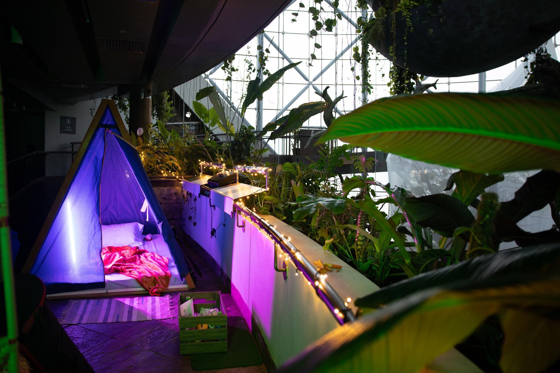 The overnight stay program in the biodome has become especially popular. Participants spend the night in tents inside the tropical forest, observe evening animal activity, take part in quests, and learn about the work of caretakers. In the morning, guests learn how to feed animals and have breakfast in the complex café.