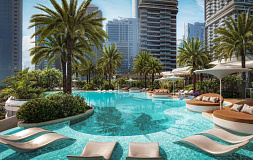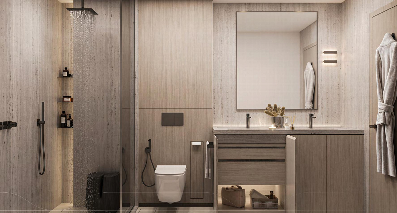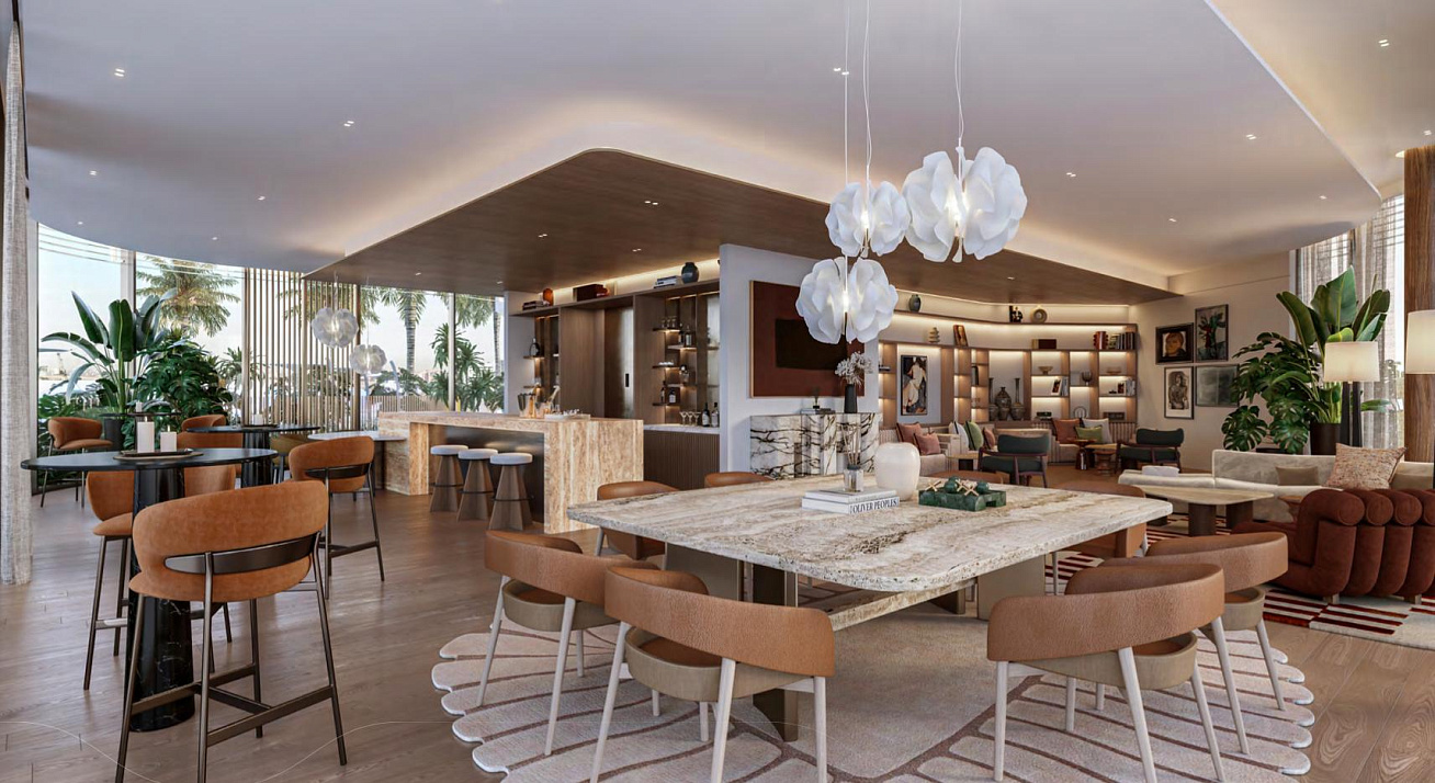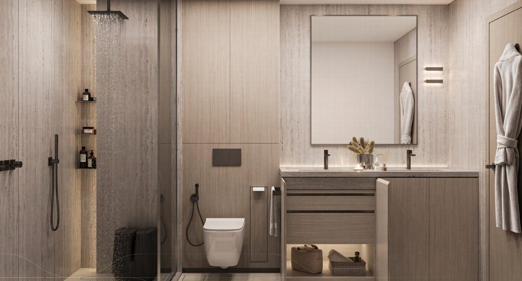 The project includes 355 properties, ranging from 1, 2, and 3 bedroom apartments to 4-bedroom penthouses. Each residence includes balconies, a kitchen with built-in appliances, walk-in closets and separate storage areas. The penthouses occupy the upper floors of the tower and additionally offer panoramic views of the waters of the Persian Gulf and the urban landscape. Residents will be able to use premium-level infrastructure: an infinity pool, Japanese thermal baths, a spa center, a fitness room with a boxing area, yoga studios, lounge bars and a club space. There are outdoor and indoor play areas for children, as well as a cinema room and a karaoke room. The project is thought out to the smallest detail in terms of comfort: a spacious lobby with a lounge, six passenger elevators, drop-off areas, landscaped spaces, 24-hour security and underground parking. The complex is located near all key infrastructure facilities, from schools and hospitals to shopping malls and restaurants. This is one of the few projects combining privacy and accessibility.