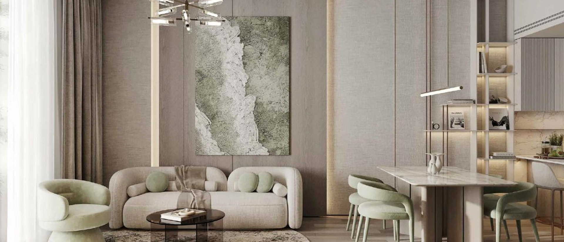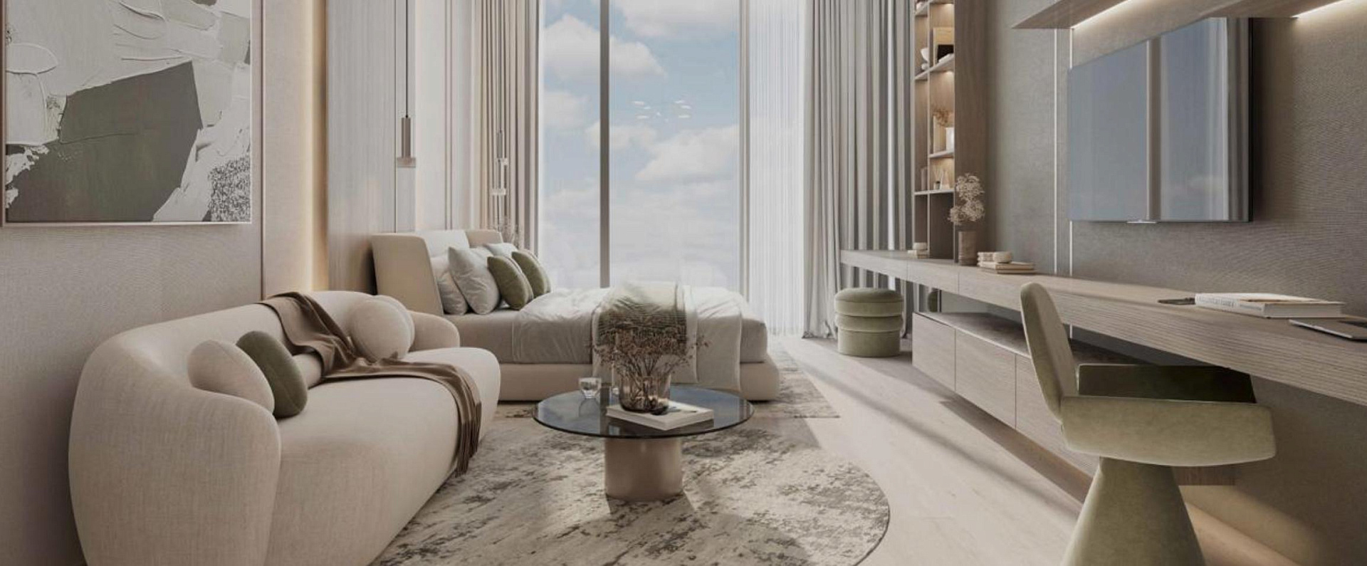 Cove Grand is a modern residential complex in the green part of Dubiland, where urban comfort, natural surroundings and accessibility are combined. The project is ideal for both living and investment purposes. The project is located in a green, peaceful part of Dubiland — with parks, family areas and a cozy atmosphere. Within walking distance are Dubai Outlet Mall, Global Village, Academic City and Dubai Safari. All layouts are thought out to the smallest detail for maximum comfort and functionality. All apartments are rented with designer furniture and built-in appliances. Kitchens, bathrooms, walk—in closets and laundries are included in the "come and live" standard from day one. Designer finishes, built-in furniture and appliances are waiting for you. This is an ideal choice for those who want to move right away or rent out a property without too much hassle. The project is aimed at young families, investors and anyone who appreciates aesthetics, thoughtfulness and comfort. A profitable investment and a comfortable life in one of the most promising areas of Dubai.