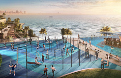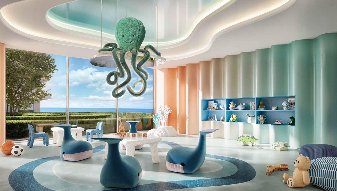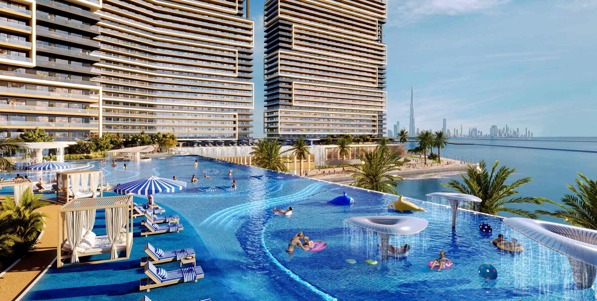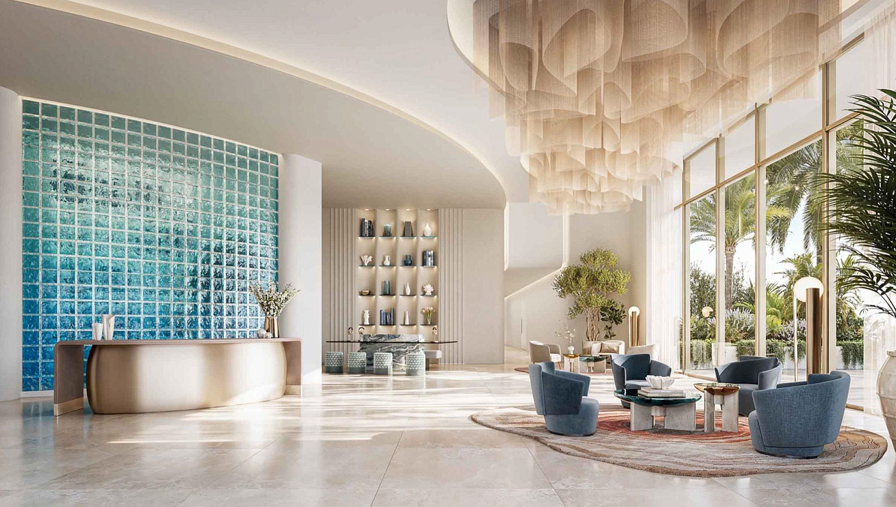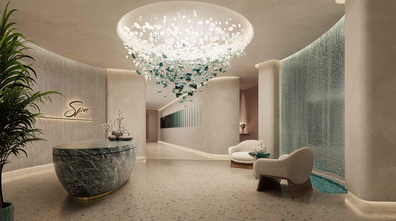 Интерьеры оформлены в биофильной концепции, где используются светлые природные тона, мягкие текстуры и обилие зелени. Панорамные окна с обзором до 270° открывают впечатляющие виды на море, гавань и городской горизонт. Пространства наполнены светом и создают атмосферу спокойствия и уюта. Инфинити-бассейн с панорамным видом, современные тренажёрные залы и фитнес-зоны, спа-центр, залы медитации и зоны отдыха на подиуме, кинотеатр и футбольный симулятор, бассейны для взрослых и детей, рестораны и кафе с диетическим и wellness-меню, приватный пляж с коралловым рифом. Такая инфраструктура создаёт сбалансированную среду для активной, здоровой и комфортной жизни у моря. Комплекс расположен в сердце Dubai Maritime City — одного из самых престижных и быстроразвивающихся районов Дубая. Благодаря удачному расположению, жители получают быстрый доступ ко всем ключевым точкам города.