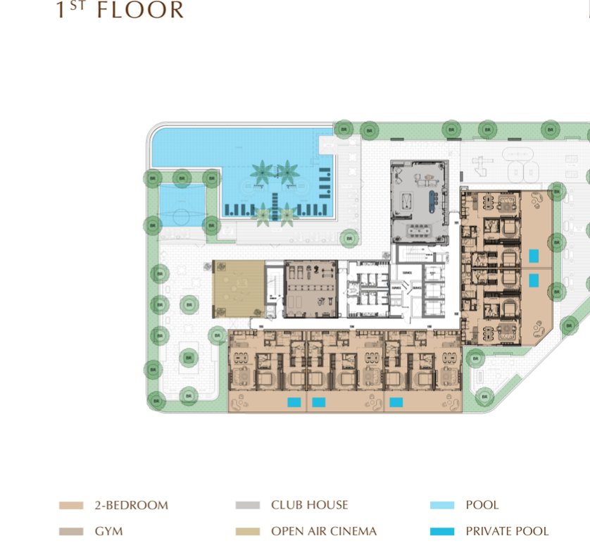 Уникальные преимущества инфраструктуры резиденции включают клубный дом, тренажёрный зал, семейные и панорамные бассейны, зоны для барбекю, детскую площадку, кинотеатр под открытым небом.